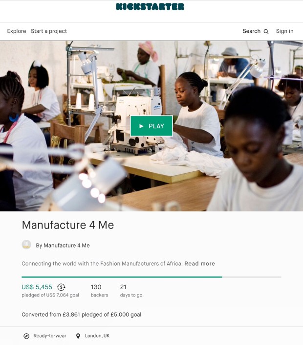 For this course, the assignment was to find a business on Kickstarter or GoFundMe that seemed interesting to me. I found the business, Manufacture 4 Me in London, UK. I support them because they connect with Manufactures in Africa.